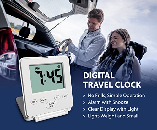 Digital Travel Alarm Clock – No Bells, No Whistles, Simple Basic Operation, Loud Alarm, Snooze, Small and Light, ON/Off Switch, 2 AAA Battery Powered, White
