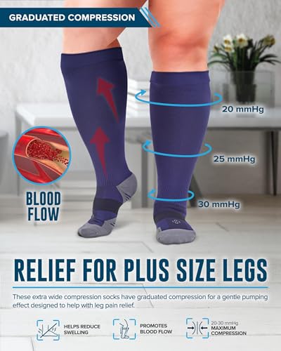 Doctor’s Select 3 Pairs Plus Size Compression Socks Wide Calf – Up to 6XL | 20-30 mmHg Compression Socks for Women Wide Calf Soreness Support | Black, Gray, Navy