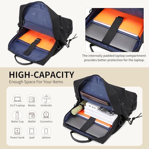 DUSLANG 15.6 Inch Laptop backpack for Men and Women, Anti theft Laptop backpack with USB Charging Port for College, Business, Black