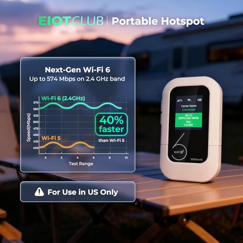 EIOTCLUB 4G LTE Portable WiFi Hotspot, Mobile Internet Pay-as-You-Go Plan | No Contract, 1GB Trial Data, 10 Device Connections, 3000mAh Battery, Pocket WiFi for Travel, Home, Car, RV, Camping(US Only)