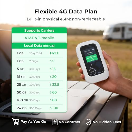 【No Contract】Get a portable 4G router with a pre-installed SIM card and 1 GB of trial data, so you’ll be able to start instantly. The SIM is locked for optimal US coverage. Skip the complicated setup—Just power on to connect & scan the QR code to recharge