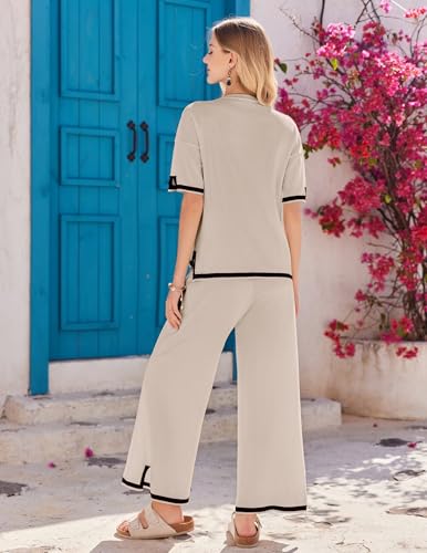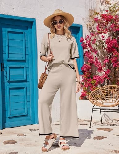 Ekouaer Lounge Set for Women Travel Outfits 2 Piece Sets Short Sleeve Sweater Top Wide Leg Long Pants Loungewear