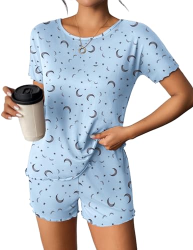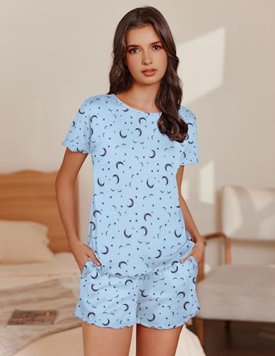 Ekouaer Pajama Set for Women with Pockets Short Sleeve 2 Piece Lounge Set Women Loose T Shirts and Shorts Soft Sleepwear