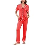 Ekouaer Pajama Sets for Women Short Sleeve Pj Set V Neck Sleepwear Chest Pocket with Long Pants Casual Loose Loungewear