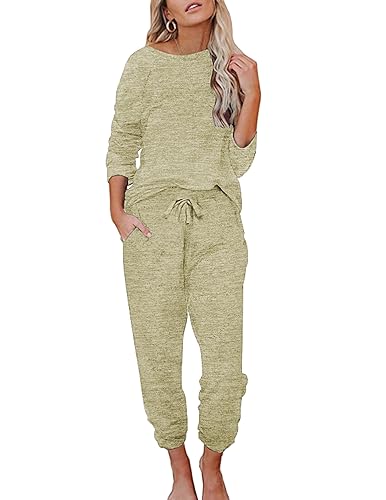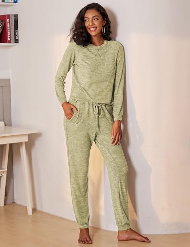 Ekouaer Womens Pajamas Set Long Sleeve Loungewear Soft Lounge Set Joggers with Pockets