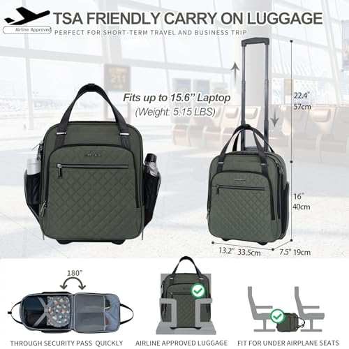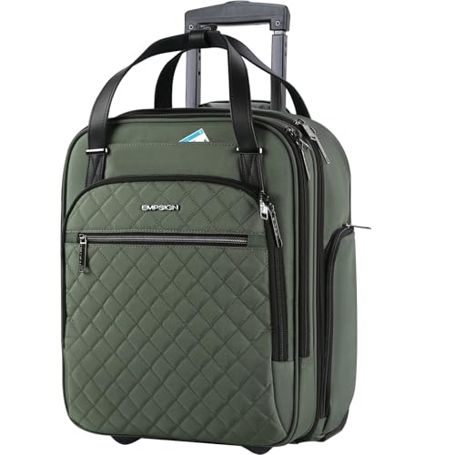 EMPSIGN Underseat Carry On Wheeled – 16″ Carry on Bag with Wheels Multi-functional Lightweight Rolling Bag Overnight Weekender Small Suitcase for Women Men Travel Business, Army Green