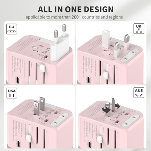 EPICKA Universal Travel Adapter, International Power Plug Adapter with 3 USB-C and 2 USB-A Ports, All-in-One Worldwide Wall Charger for USA EU UK AUS (TA-105C, Pink)