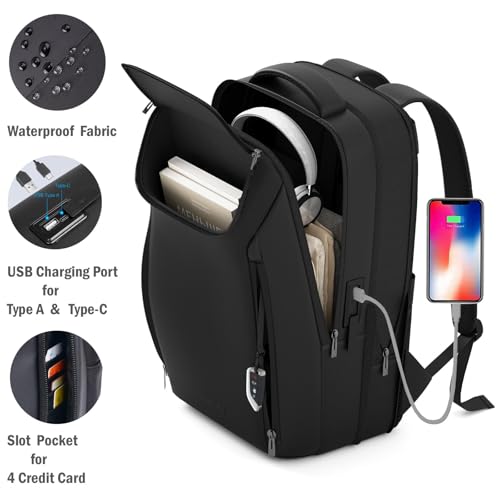Expandable Travel Backpack, Business Laptop Backpack,Commute Backpack with USB Charging Port fit 15.6 Inch Laptop