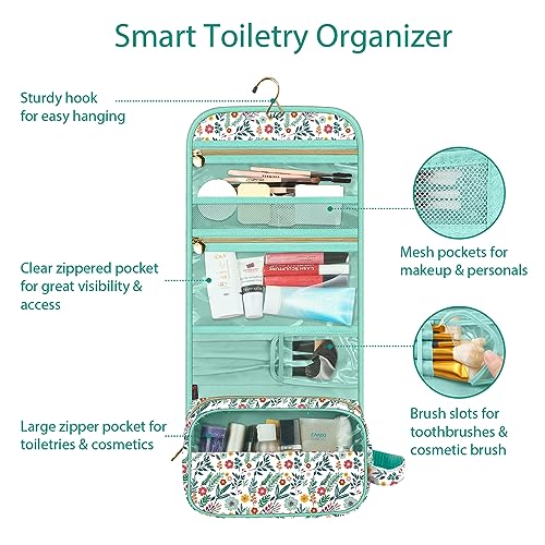 Fintie Portable Toiletry Cosmetic Travel Bag, Large Water Resistant Hanging Makeup Organizer Storage Pouch Case for Women Girls, Spring
