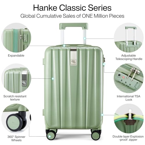 Hanke Expandable Hard Shell Luggage Sets 2 piece Carry on Luggage with Wheels Suitcases Lightweight Checked Travel Luggage Rolling Large Suitcase Travel Luggage Bag Woman Men 20/29 Inch(Bamboo Green)