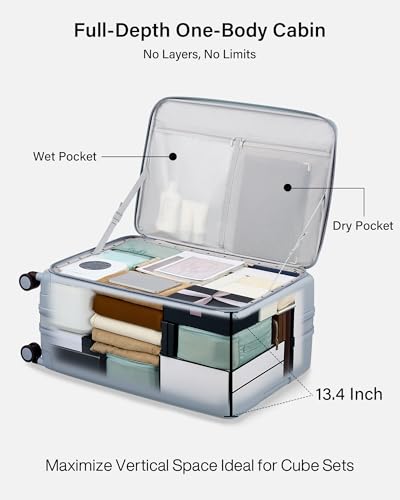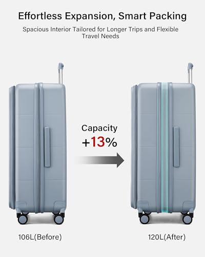 Smart Expansion for 13% Extra Capacity: Unlock up to 14L additional packing space instantly. Our expandable design transforms this large suitcase into a versatile traveler, letting you pack souvenirs or extra essentials effortlessly