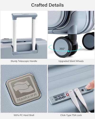Durable 3-Layer 100% PC Hard Shell: hanke hardside suitcase delivers exceptional affect resistance without the majority. The shatterproof material prevents cracking. Lightweight yet 30% tougher than standard checked luggage materials – best for rough baggage handling