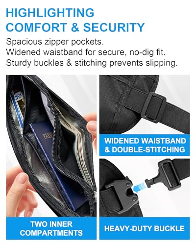 Smart & Protected Organization: Our waist pouch has 2 main zippered pockets + hidden rear pocket organize phones, passports, cards and cash, keeping essentials secure and accessible