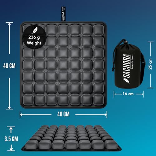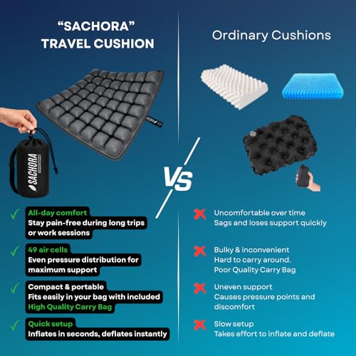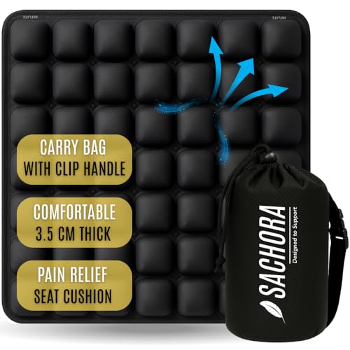 DESIGNED TO SUPPORT – SACHORA QUALITY PROMISE – Sachora was once created to make go back and forth and long sitting more comfortable. If your inflatable seat cushion does not enhance you as expected, contact us and we will be able to do our best to make it right.