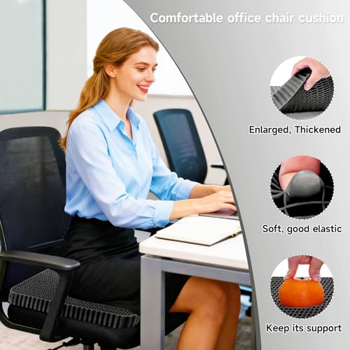 Innovative Gel Seat Cushion for Long Sitting, Large and Thick, Seat Cushion for Back, Sciatica, Tailbone, Hip Pain Relief, Used for Office Chair, Wheelchair, Car, Recliner, Truck.(Black)