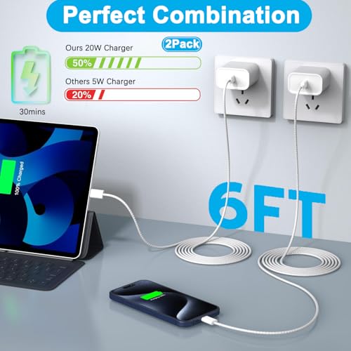 iPhone 17 16 Charger Fast Charging,Apple iPhone USB C Fast Charger Block,2Pack 6FT Type C USB C to C Woven Cable Cord for iPhone 17/17 Pro Max/17 Pro/Air/16 Pro Max/16 Pro/15 Pro Max,iPad Pro/Air/Mini