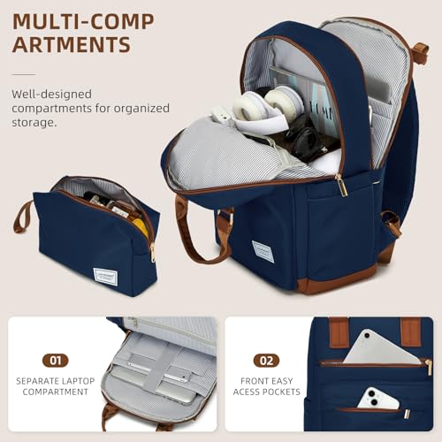 LARVENDER Luggage Sets 3 Piece Expandable Carry on Luggage 22x14x9 Airline Approved Hardshell Suitcase with Wheels TSA Lock, Lightweight Suitcase Set for Women with Travel Backpack, Navy Blue