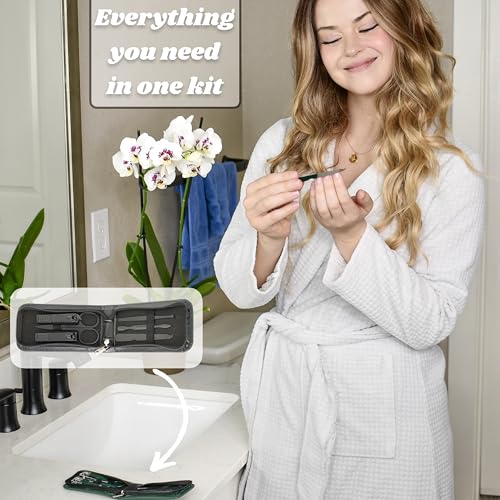 Made Easy Kit Portable Nail Clipper Set – 6-Piece Travel Manicure Kit for Men & Women – Includes Nail Clippers, Scissors, File & Grooming Tools in Compact Zip Pouch (Black)