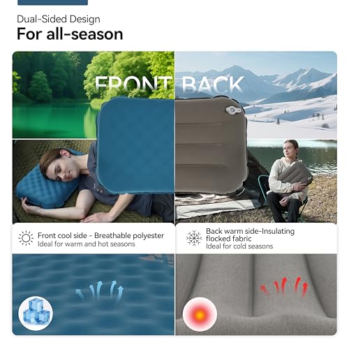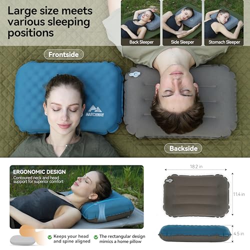 MARCHWAY Inflatable Camping Pillow with Soft Foam Top & TPU Air Bladder, Dual-Sided Support for All-Season, Lightweight Compact Travel Pillow for Hiking, Backpacking, Airplane, Car (Blue)
