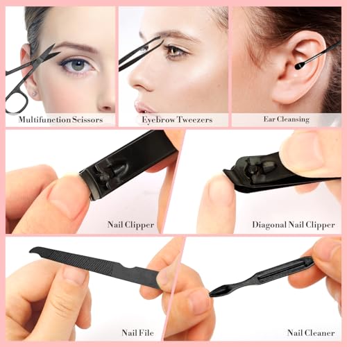 MULTIFUNCTIONAL:The nail cutting set women includes 7 pieces of nail cutting tools and pedicure tools,including fingernail clippers for men,slant nail clippers for women,grooming scissors men,mens tweezers grooming kit,ear digger,nail file and dead skin fork,mens grooming kit can be utilized for many functions:nail cutting kit for women,women’s grooming,mens facial care kit,pedicure set for feet,personal handle women,personal handle men,nail care kit for women.