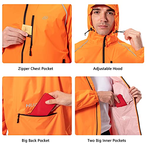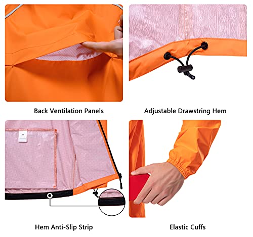 Men’s Cycling Running Rain Jacket Lightweight Waterproof Biking Hiking Windbreaker Raincoat Reflective Packable