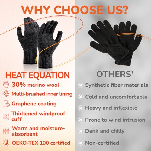 Merino Wool Gloves for Men Women, Touch Screen Warm Glove Liners Thermal Soft Knit Lining for Winter Running Hiking