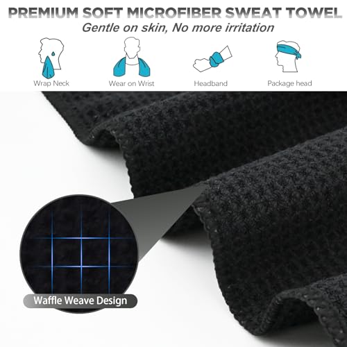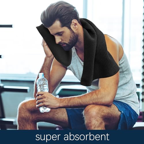 Microfiber Gym Towels for Working Out, Quickly Dry Yoga Towels for Men & Women Tennis, 16 Inch x 27 Inch, 6 Pack, Black