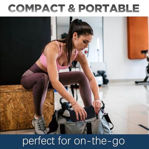 ULTRA COMPACT, LIGHTWEIGHT, STAY CLEAN WITH HANGING LOOP: With an integrated snap strap closure that doubles as a hanging loop over the door, your backpack, or bottle. the large thin towel rolls up into a packable commute-friendly size. Perfect for someone who travels light.