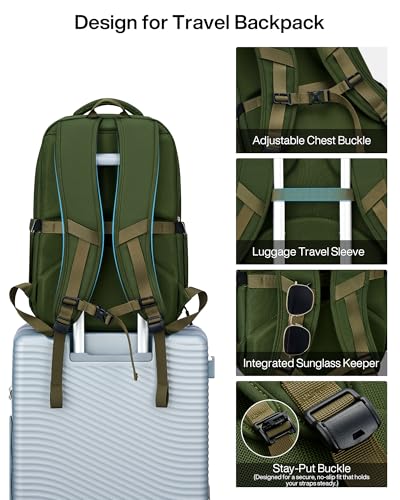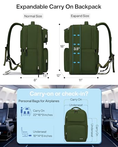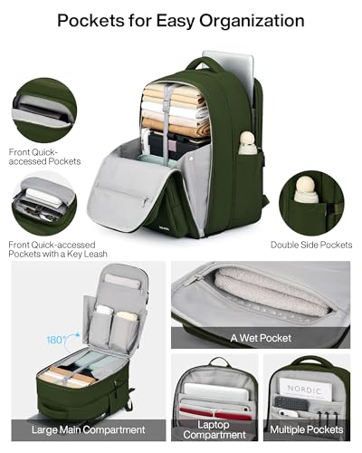 MILADA Expandable Travel Backpack 28L to 39L, TSA-Approved Carry On Backpack with 17 Inch Laptop Compartment, School Business Work Backpack for Men & Women, Green