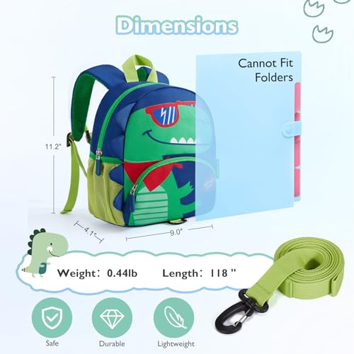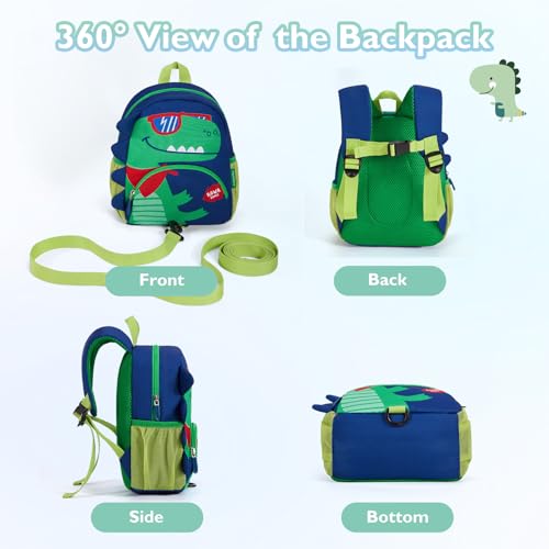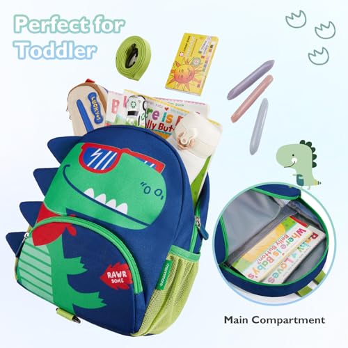 mommore Toddler Backpack for Boys 2-4, 3D Cartoon Cute Kids Dinosaur Backpack Water-Resistant Compact for Travel Preschool with Toddler Leash, Chest Buckle