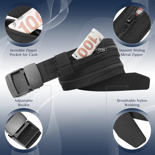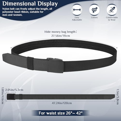 Money Belt- Travel Security Money Belt with Secret Compartment, Anti-Theft Nylon Hidden Money Pouch with Zinc Alloy Buckle for Dad Boyfriend Men, Business Travel Daily