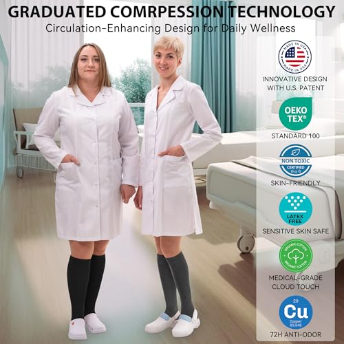 NEWZILL Copper Compression Socks for Women & Men 15-20mmHg Cotton Rich Odor Control Dress Socks for Business Casual Running Medical Athletic Support, Edema Diabetic Relief