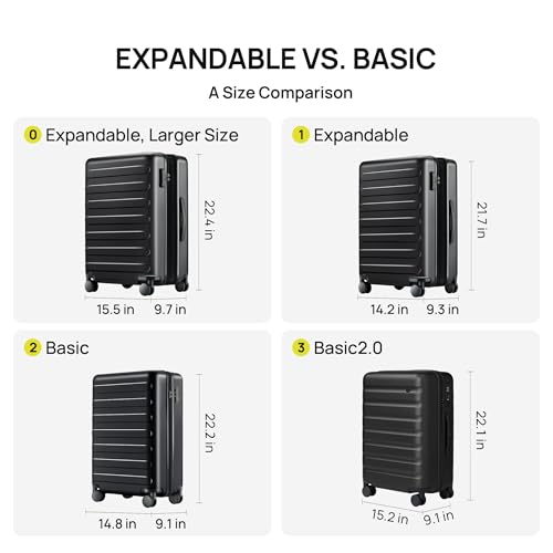 NINETYGO Carry On Luggage 22x14x9 Airline Approved, 20 Inch Luggage with Smooth Spinner Wheels, Expandable, Hard Shell PC Suitcase, Lightweight Travel Luggage, TSA Approved (Black, Rhine Max)