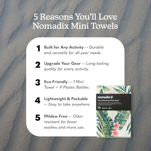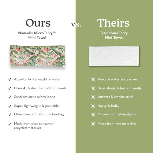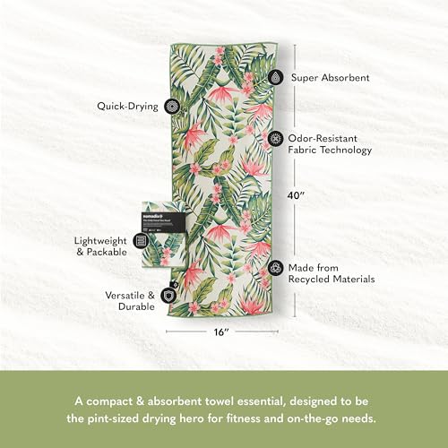 Nomadix Mini Towel – Perfect for Beach, Pool, Travel, Camping, Yoga – Made with Recycled Materials – Super Absorbent – Sand Resistant – Palms Pink – 16×40