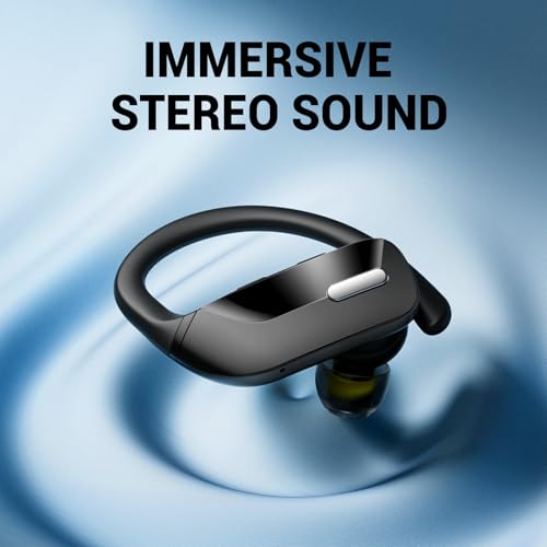 occiam Sport Wireless Earbuds Bluetooth Headphones 80hrs Playtime Deep Bass Ear Buds with Earhook Noise Cancelling Mic Waterproof Earphones for Workout Running Black
