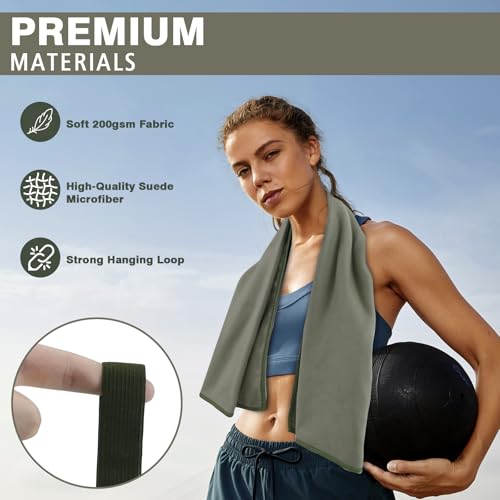 Quick Dry Camping Towel, Microfiber Travel Towel 3 Size at 1 Pack for Camping, Beach, Gym, Sports, Yoga & Swimming Pool, Army Green
