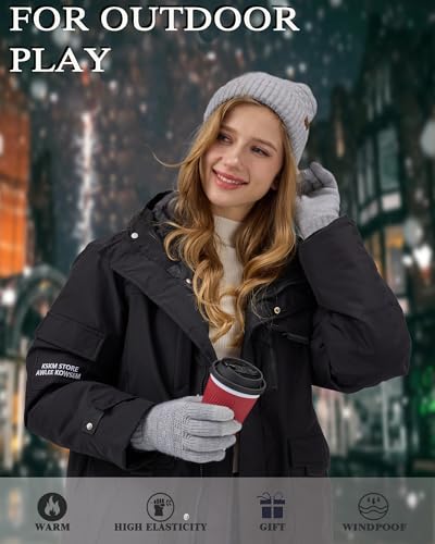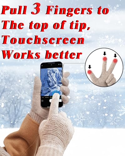 REACH STAR 2 Pairs Winter Gloves for Men and Women Touch Screen Elastic Thermal Knit Lining Warm Gloves for Cold Weather