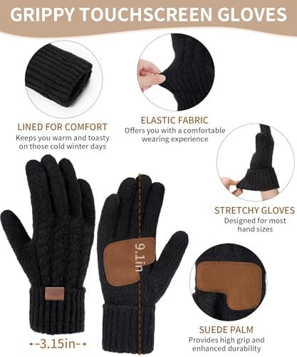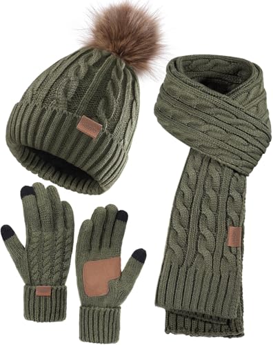 Remifa Winter Hat Scarf Gloves Set for Women, 3 PCS Pom Pom Beanie Hat Touchscreen Glove Long Neck Kint Scarf Christmas Gifts
