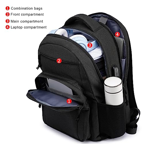 School Backpack for Teen Boys and Men – 15.6 Inch Laptop Backpack with USB Charging Port, Anti-Theft, Water-Resistant Sturdy – Ergonomic, Multiple Pockets, College, Black