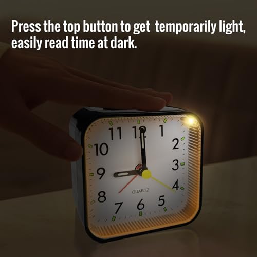Small Analog Travel Alarm Clock, Battery Operated Desk Table Shelf Clock for Kids, Quieter Bedside Alarm Clocks for Bedrooms Bathroom Living Room Kitchen, Black