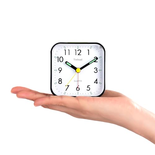 Small Battery Operated Analog Travel Alarm Clock Silent Non Ticking, Gentle Wake, Ascending Beep Sounds, Snooze,Lighted on Demand, Easy Set(Black)