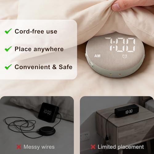 EXTRA LOUD 110DB ALARM WITH BED SHAKER: A dual system combining 110dB sound and a powerful shaker—ideal for heavy sleepers or the hearing impaired. No more missed shifts or school mornings—wake up on time, every time.