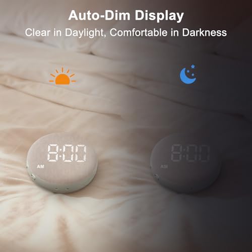 AUTO-DIM DISPLAY WITH 5 BRIGHTNESS LEVELS: The LED screen automatically adapts to the ambient light or may also be manually adjusted in five levels. Bright in daylight, soft at night — keeping your bedroom comfortable and protecting your quality sleep.