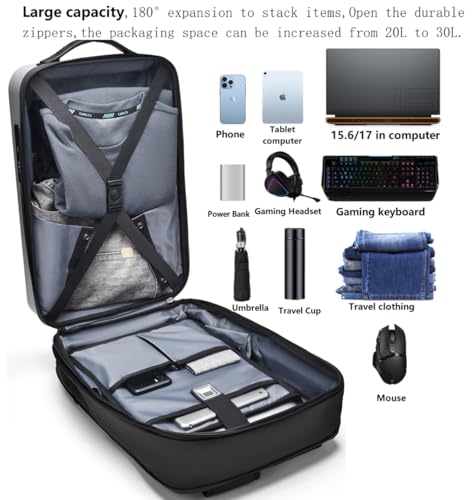 ✔ Slim & Expandable:This upgrade 17inch business backpack for Starlink Mini is ultra compact and sleek,also expandable to carry big objects.Open the durable zippers,the packaging space can be increased from 20L to 30L.