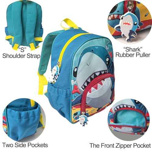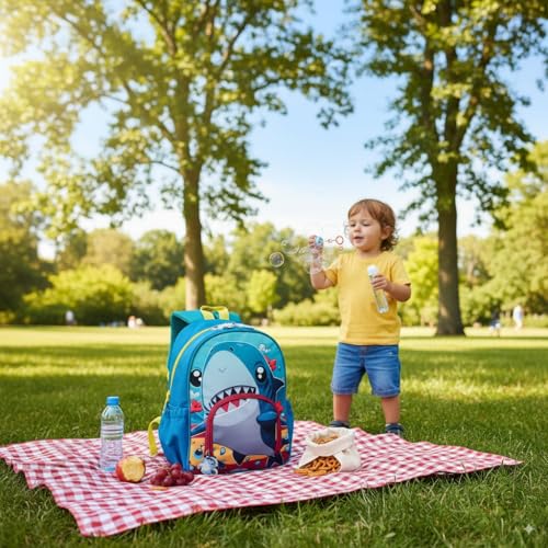 Toddler Backpack for Boys, 12 Inch Mini Blue Shark Preschool Bag, Lightweight Small Kids Daypack for Daycare, Travel & Nursery (Fits Snacks & Toys, NOT for A4 Folders)