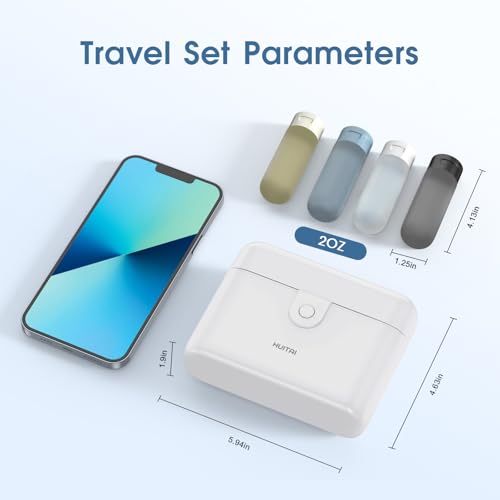 Compact & Travel-Ready Design:Crafted from durable ABS material, the travel case measures 5.9” x 1.9” x 4.63”, offering a lightweight and portable solution for all your travel needs. It includes four 2oz bottles, perfectly sized to meet TSA liquid requirements while providing ample space for your favorite toiletries.