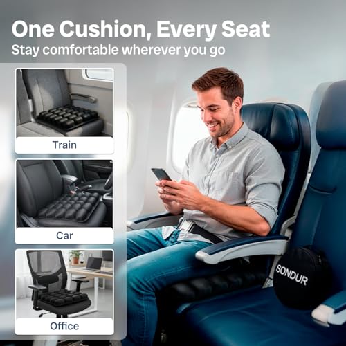 CloudAir Comfort Enhance: 24 interconnected air cells calmly distribute weight, reduce pressure points, and Enhance your spine and tailbone for long flights, trains, cars, or workplace chairs.