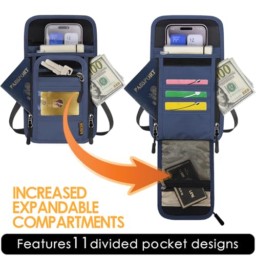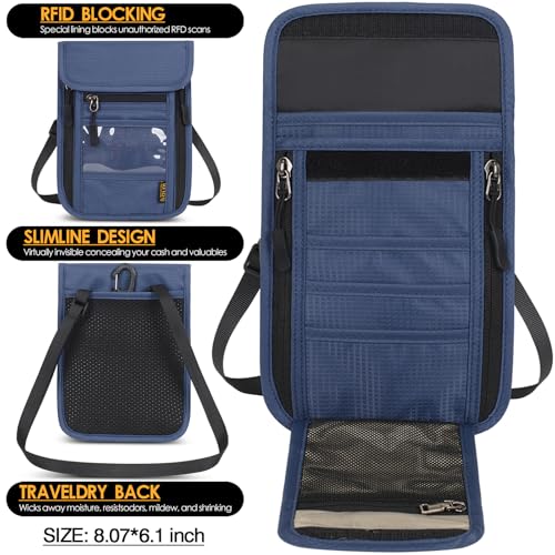 Travel Neck Wallet RFID Blocking – Hidden Passport Holder & Anti-Theft Money Pouch for Men & Women, Lightweight Concealed Undergarment Organizer with Adjustable Strap, Safe Document Holder