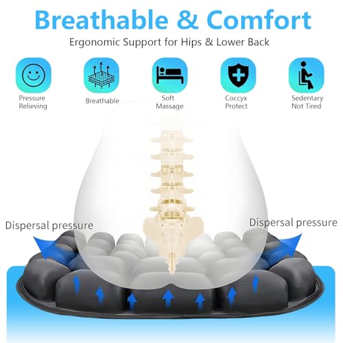 【Stress Relief Protection】: Trip seat cushion pressure dispersion technology targets the coccyx, sit down bones, and lumbar spine areas, reducing back pain. Inflatable seat cushion for for airplane Trip groove design has zero pressure in the middle area, Prevent or relieve hemorrhoids without pressing at the anal area. Trip cushion perfect for drivers, programmers, and patients