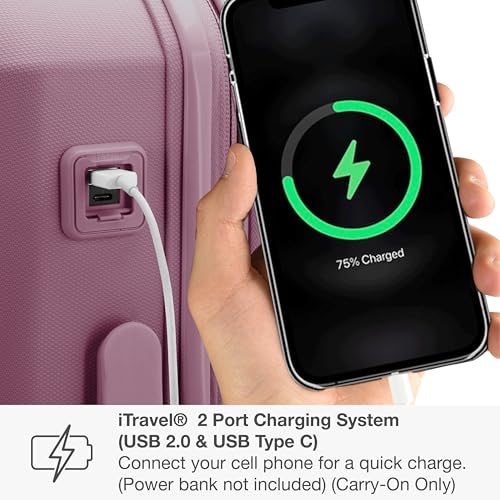 Travel with confidence and durability with the Traveler’s Choice Pagosa Luggage Set. Crafted with a textured polypropylene hardshell, this set is abrasion-, scratch-, and water-resistant—perfect for withstanding the demands of any journey. The 360° spinner wheels ensure smooth and effortless mobility through crowded terminals, whilst the multi-stage telescoping maintain with a push-button lock allows for easy height adjustment and maneuverability. Conveniently charge whilst you’re on the go with an iTravel charging port (carry-on only, powerbank not included). Each piece includes an expansion gusset that offers up to 2 inches of additional packing capacity. Top and side rubber carry handles make lifting a breeze. Inside, you can find a spacious main compartment with a couple of zippered pockets and interior compression straps to keep belongings neatly secured. Finished with durable self-mending #10 zippers, the Pagosa set is designed to last, commute after commute.